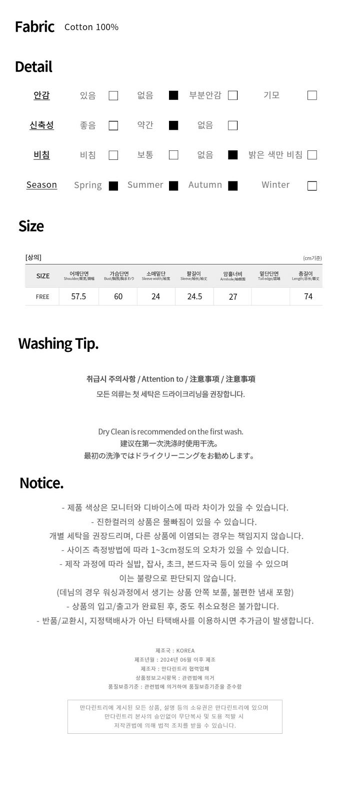 洗滌方式 : 干洗 手洗